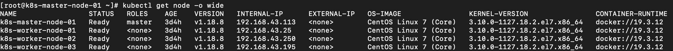 | k8s cluster worker node 3 | CentOS 7 | 192.168.43.195 | k8s-worker-node-03 |