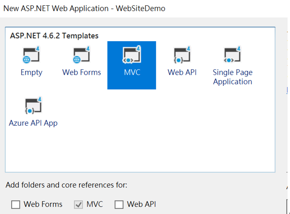 首先先建立一個最基本的MVC網站,取名為WebSiteDemo