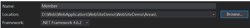 接著在WebSiteDemo專案中新增一個Area,取名為Member