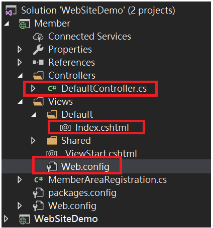 注意:因為Member專案是從一個空的專案開始建立,因此Member/Views底下不會自動產生Web.config,所以必須從WebSiteDemo中複製過來。