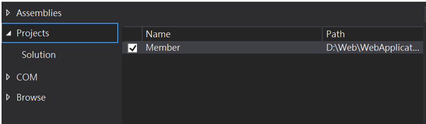 其實還有最後一步還沒有做,我們必須在WebSiteDemo中加入Member專案的參考(不然WebSiteDemo是不會認得Member專案的喔)