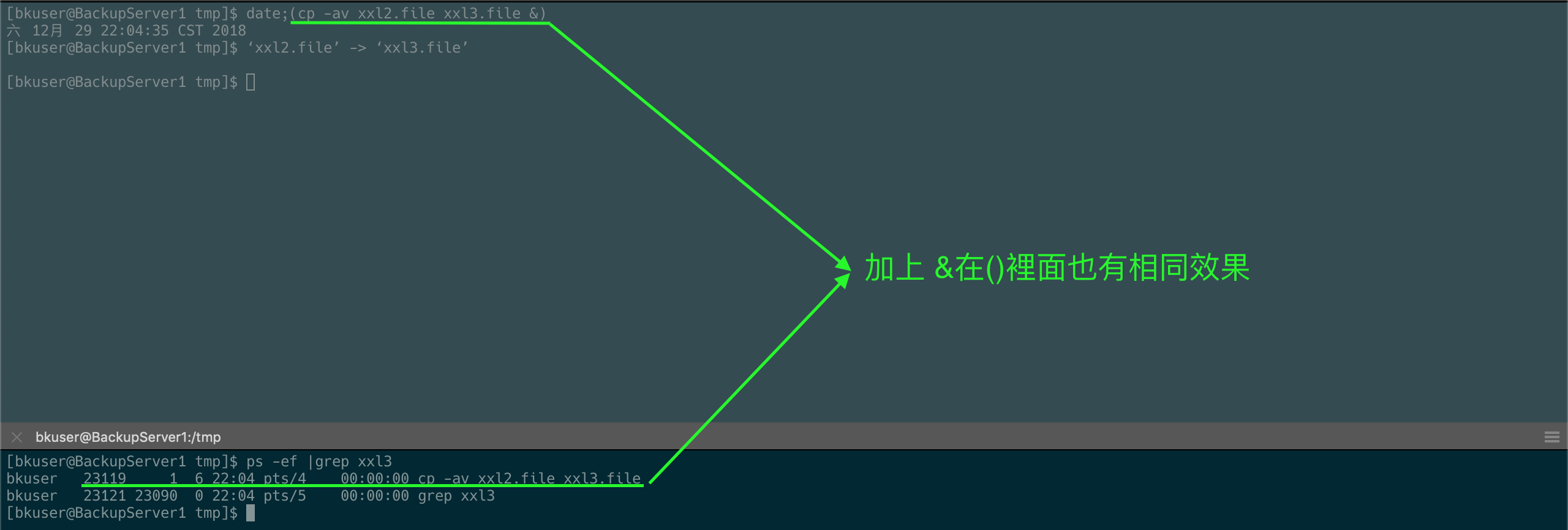 將&加在()內也可發現也有相同效果,父程序也是1。