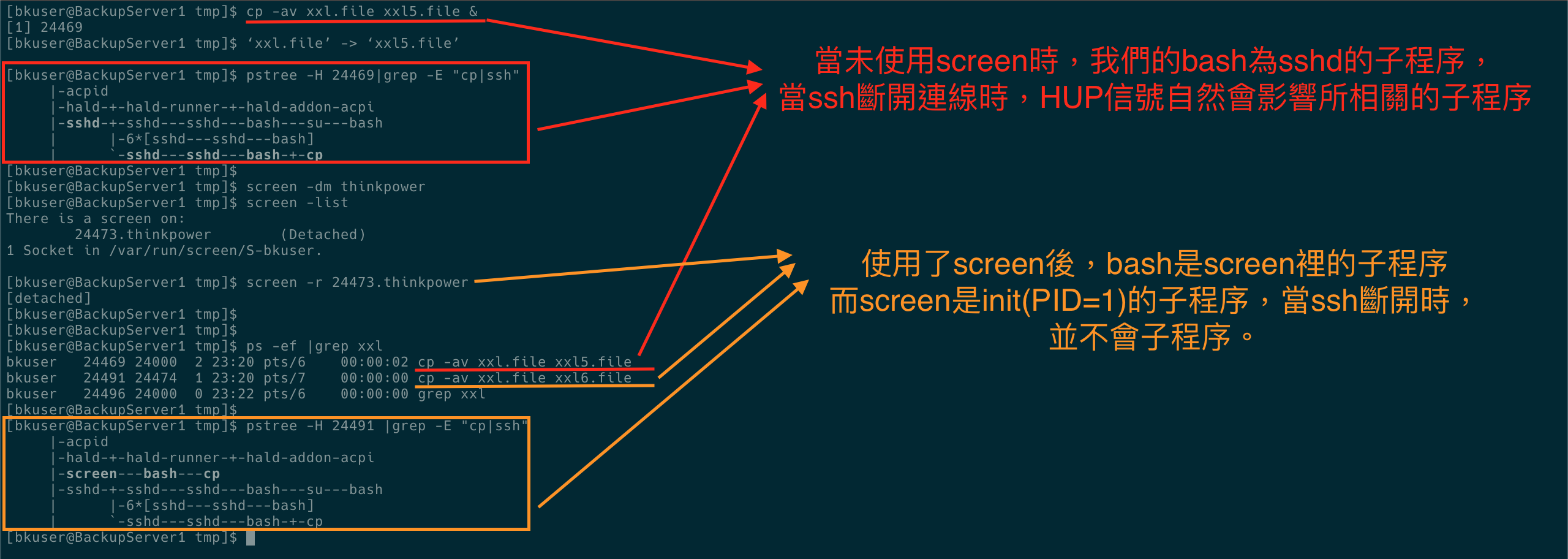 nohup及setsid是最臨時也最快的方法,如果要大量操作,screen就能派上用場了。