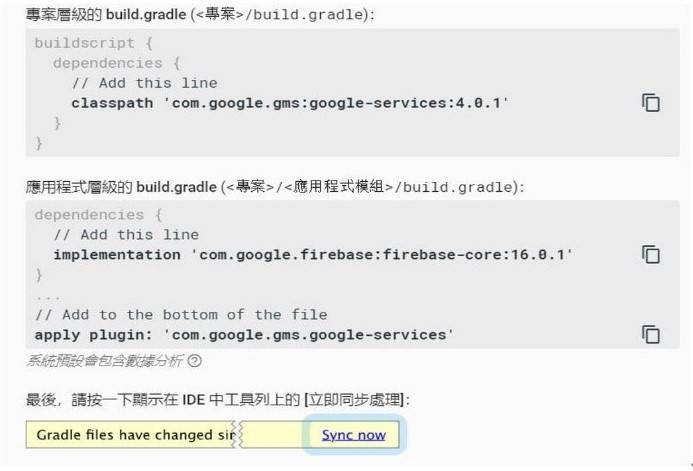 請注意,依官網說明需要用到Google Services plugin 版本3.1.2或以上。