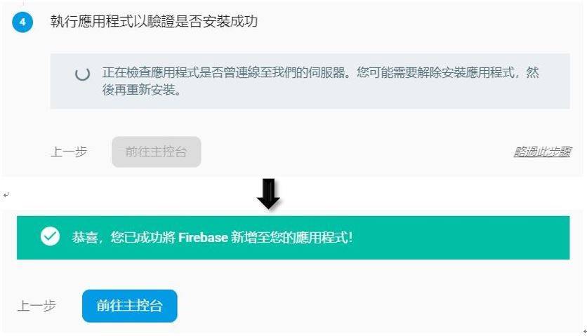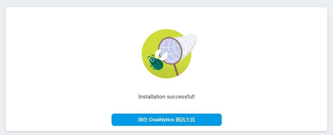 Firebase會自動監聽我們的app是否安裝Crashlytics,監聽到之後會看到以下成功頁面。