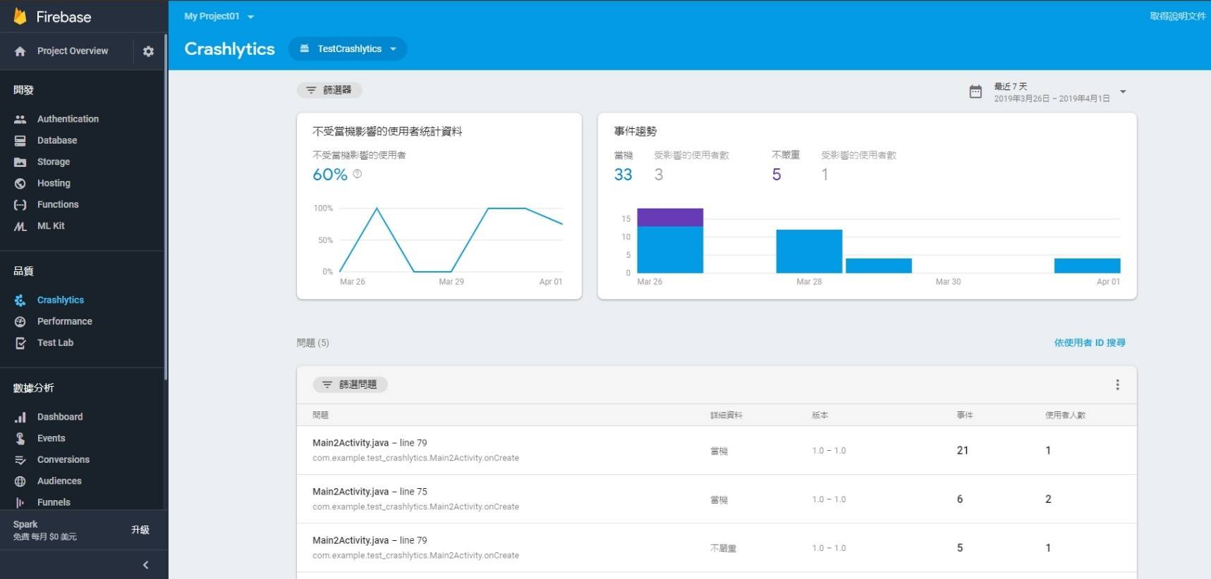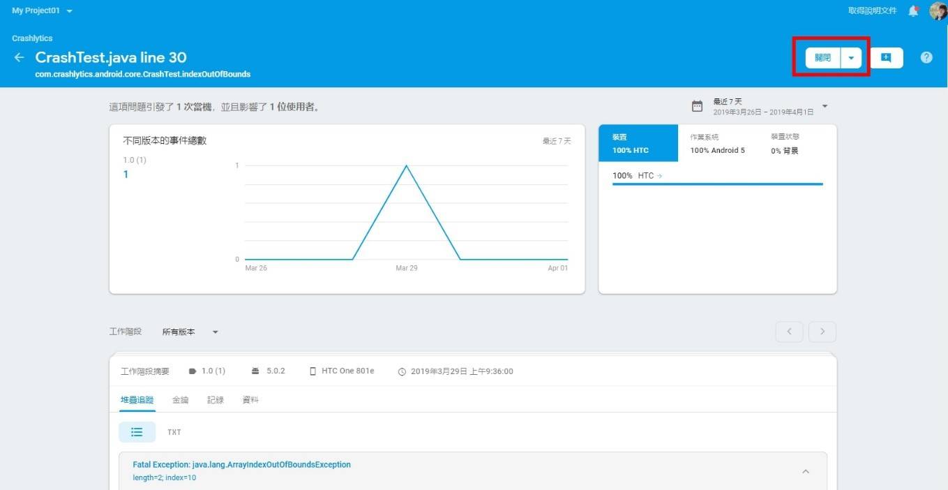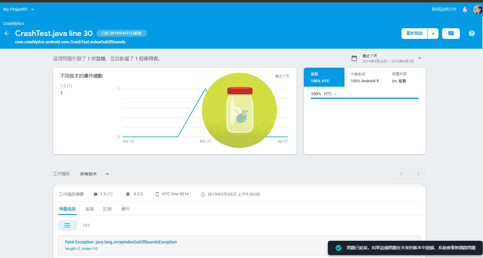 3-7 執行應用程式以驗證Crashlytics是否連結成功: