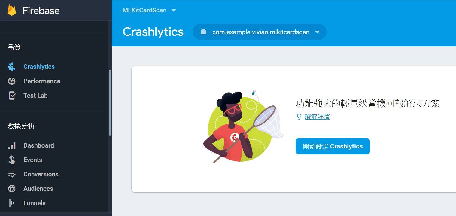 成功將Firebase新增至應用程式後,接下來即可開始設定連結Crashlytics。