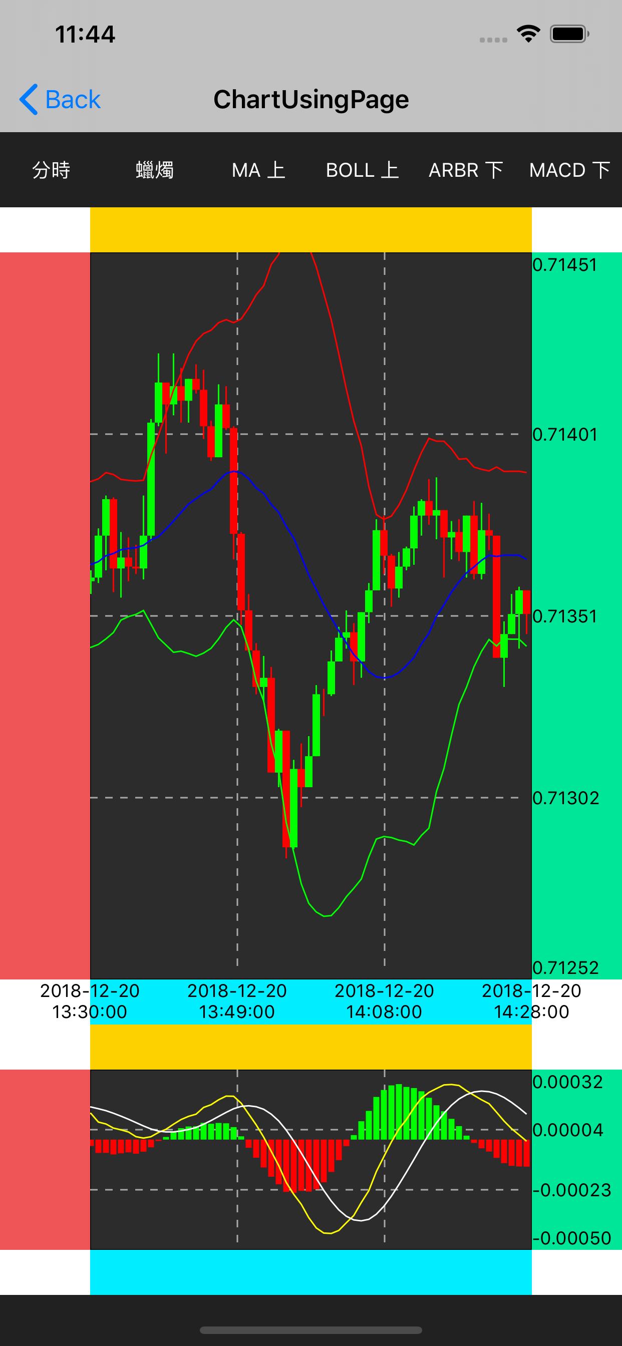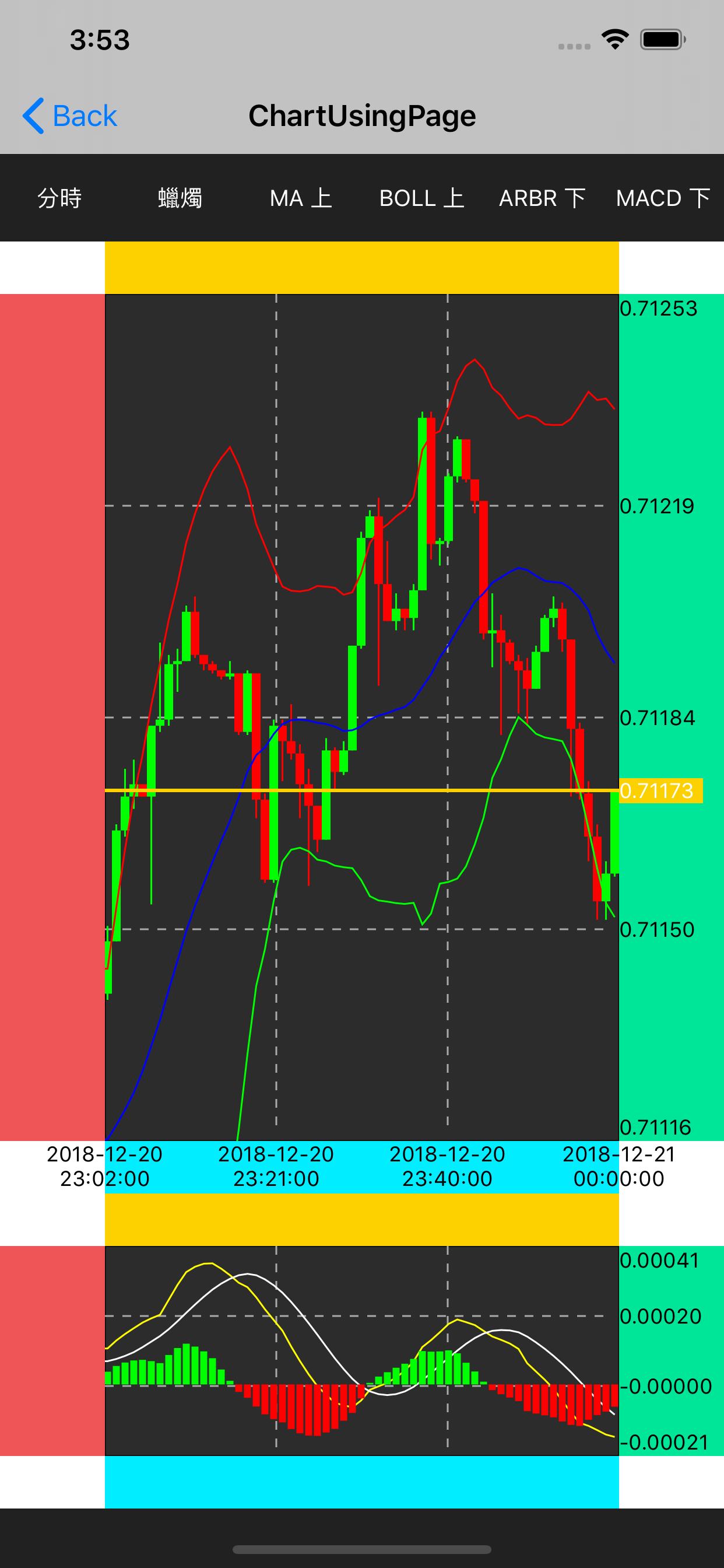 Then checkout to commit 9714712 for drawing technical indicators on the candle chart.