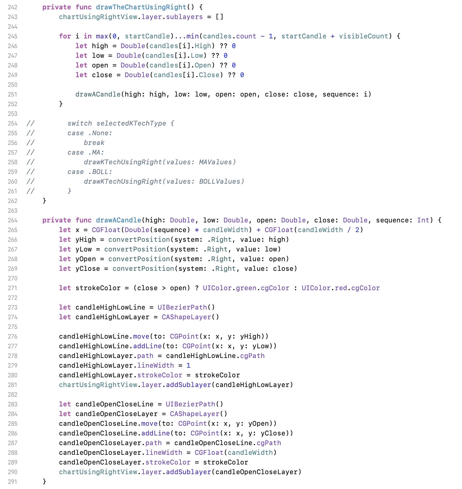 Here is the basic concept of financial chart drawing, and this is one of the application with Bézier curve. To conclude it, this is just like to make UI without interface builder and auto layout system which is to calculate the coordinate manually with a formula. If you know this theory, you will find out that the chart you think very complex is actually very easy.