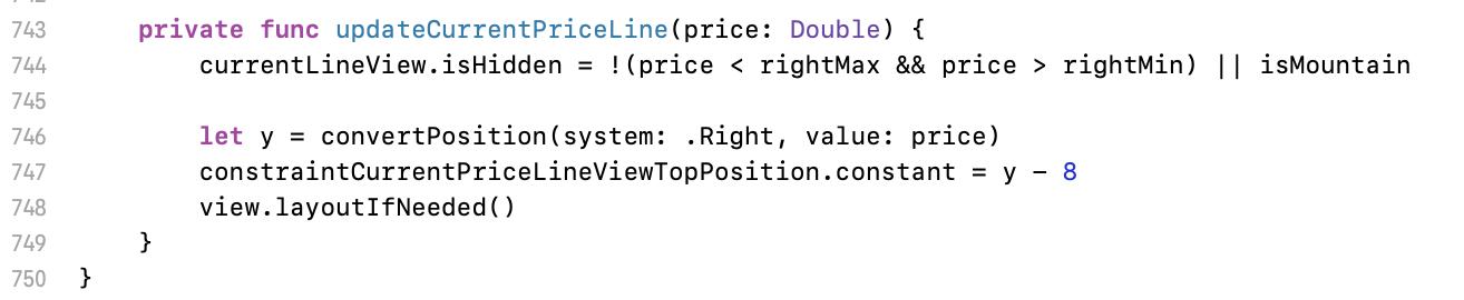 747 行是因為橫線是要整個現價 view 置中的位置,而我這個 view 的高度設定為 16,所以才需要 8 的調整。