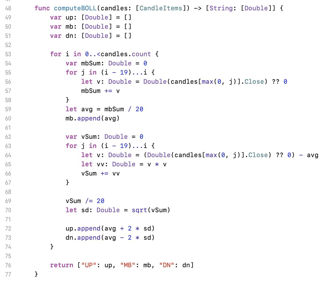 整體來說並無特別要再介紹的部份。這幾乎跟畫技術指標圖一樣,只是座標轉換參考座標系變成用 K 線圖的系統,最後再把線畫到 K 線圖上。