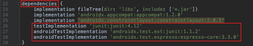 須在class的開頭加上測試類別@RunWith,通常用@RunWith(AndroidJUnit4.class)