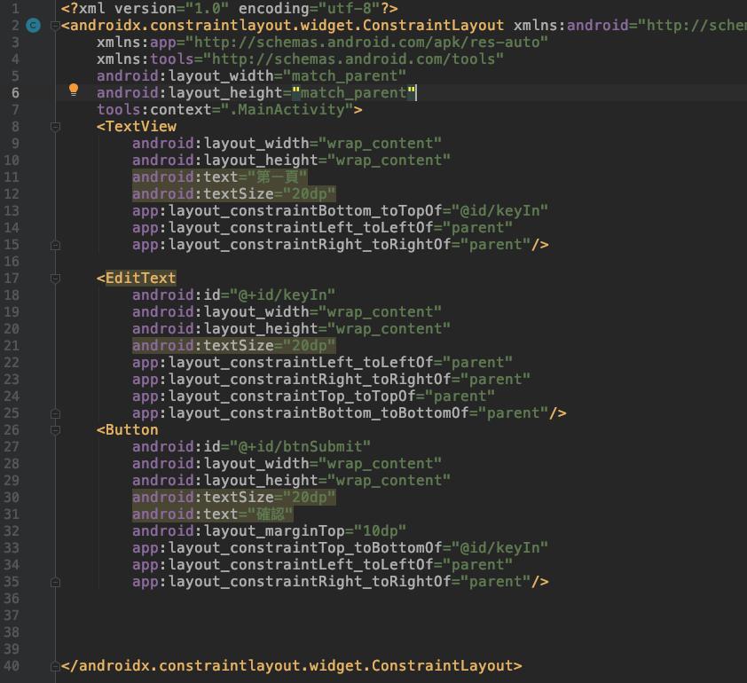 第五行:在view找到btnSubmit確認鈕後,執行點擊的動作。點擊後會跳轉到第二頁。