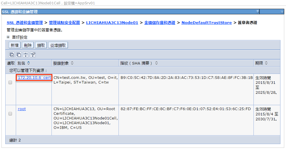 WebSphere上使用CXF Client去呼叫SSL的WebService,實作時發現使用jks,一直無法認證成功(丟出com.ibm.jsse2.util.j: No trusted certificate found 錯誤訊息),故改使用WebSphere truststore, 有2個方法,但WebSphere設定不管是那個方法都需要作。