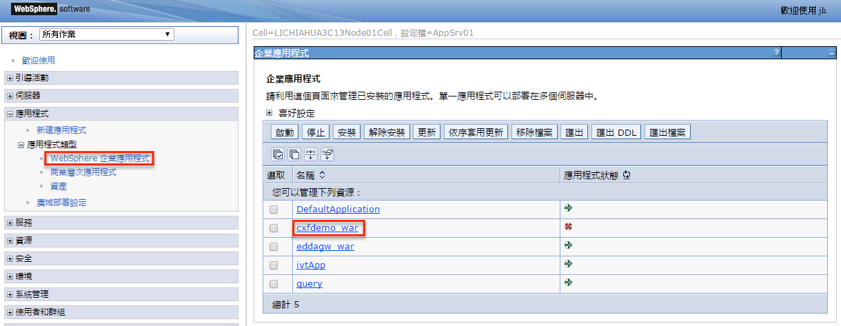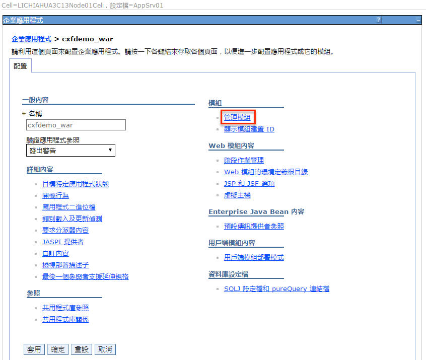 4.1、 程式匯出成.war檔, 部署到WebSphere,部署成功,但實際執行功能時報錯,點選部署上去的war檔