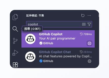 先至 VS code 的外掛模組下載的外掛模組下載 GitHub Copilot。