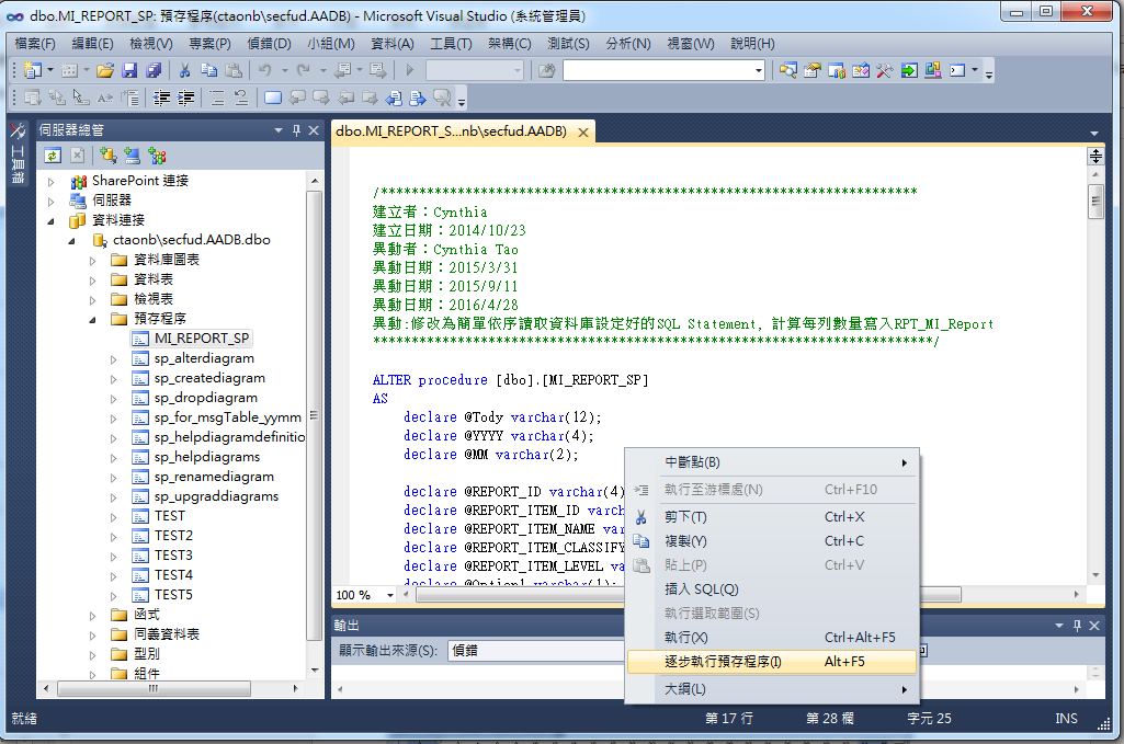 • 初步介紹如何使用Visual Studio逐步執行預程序來debug Stored Procedure of MS SQL。
