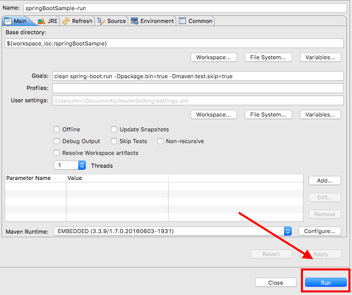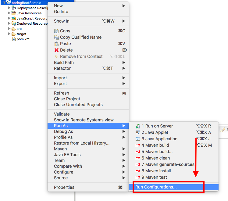 在springBootSample專案上按右鍵Run asRun Configuration…